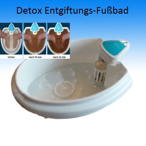 Das Body Detox-Fußbad entgiftet den Körper über die Schweißdrüsen der Fußsohle, indem salzhaltiges Wasser mittels Elektrolyse ionisiert wird.